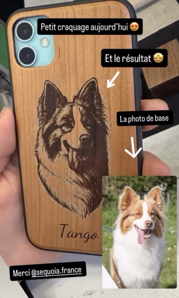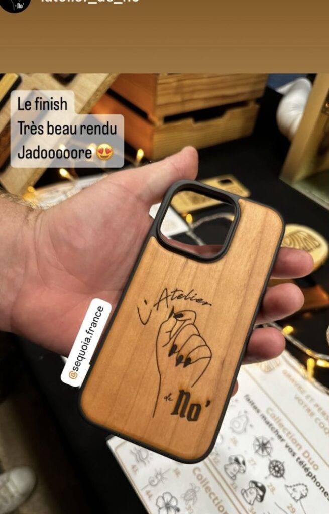 Depuis, Séquoia fabrique des coques et accessoires en bois gravé, pensés pour durer, pour être touchés, offerts, utilisés.